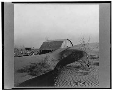 DustBowl3 Publié par Olivia RM le février 28, 2016février 28, 2016 Title: The winds of the « dust bowl » have piled up large drifts of soil against this farmer’s barn near Liberal, Kansas Creator(s): Rothstein, Arthur, 1915-1985, photographer Date Created/Published: 1936 Mar.